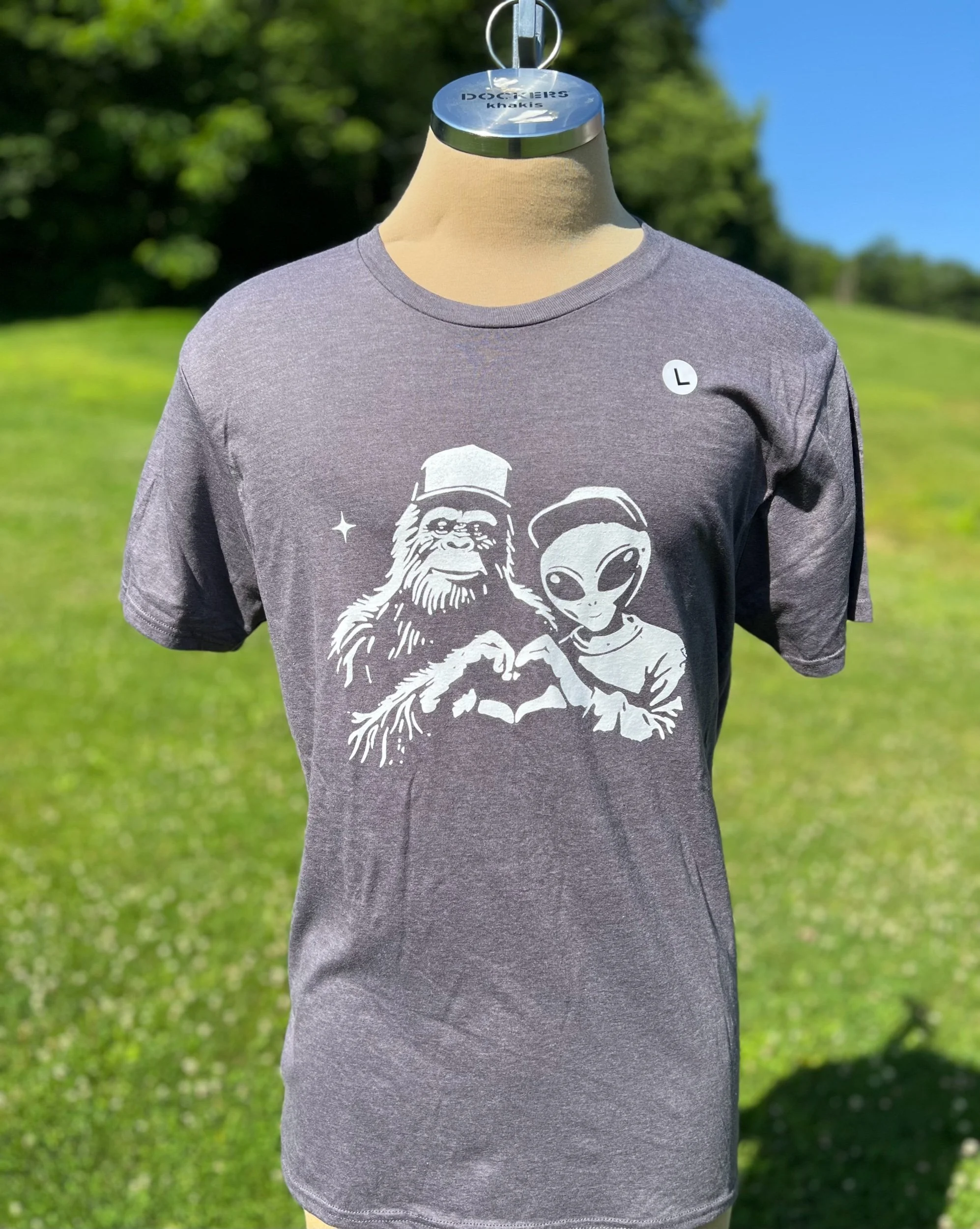 Shop › Bigfoot and Alien Image 1 of 1 Bigfoot and Alien $15.00 Unisex 50/50 tee Size: Small Medium Large XL 2XL 4XL 3XL Quantity: Purchase Added! Unisex 50/50 tee